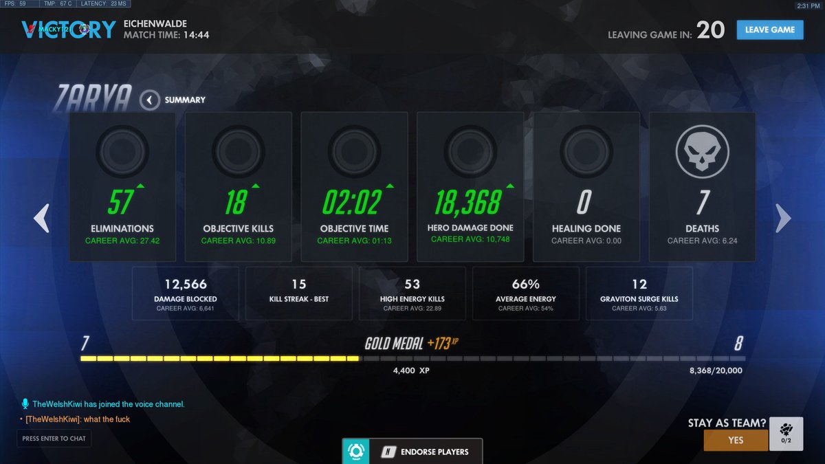 Do these Zarya stats look good for a less than 15 minute eich game?pic.twitter.com/nJYP0YLc3o