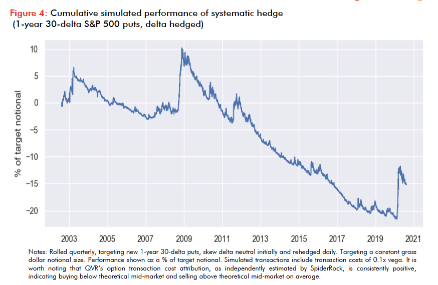 But what this argument is missing is the portfolio effect. Tail risk hedges are inversely correlated with the performance of risk assets and produce outsized returns during times of crisis.