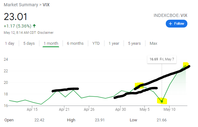 I'm putting lines on charts of the vix and pointing out this looks like a head and shoulders potentially forming, a real topping formation and also based off the consolidation move this breakout looks sustainable. What are YOU doing to prepare for coming war against octopi?