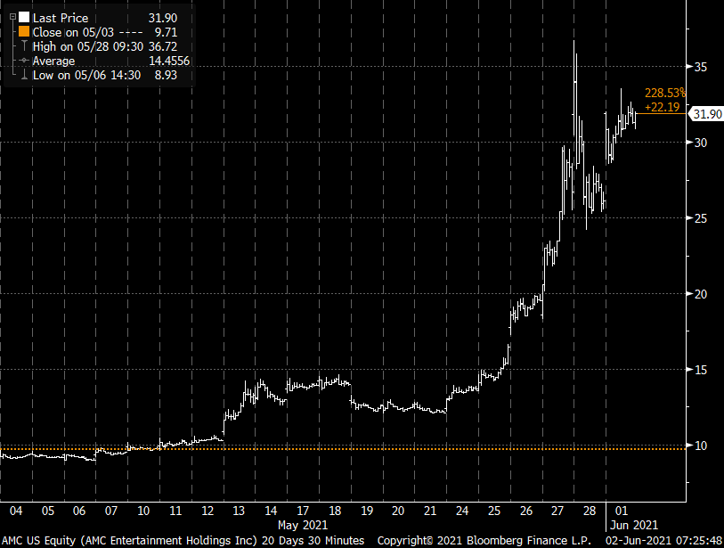 AMC shares finished last week higher by more than 116 percent. Yesterday higher by more than 22 percent. Now higher by more than 20 percent in pre-market. pic.twitter.com/PQMGsriQMl