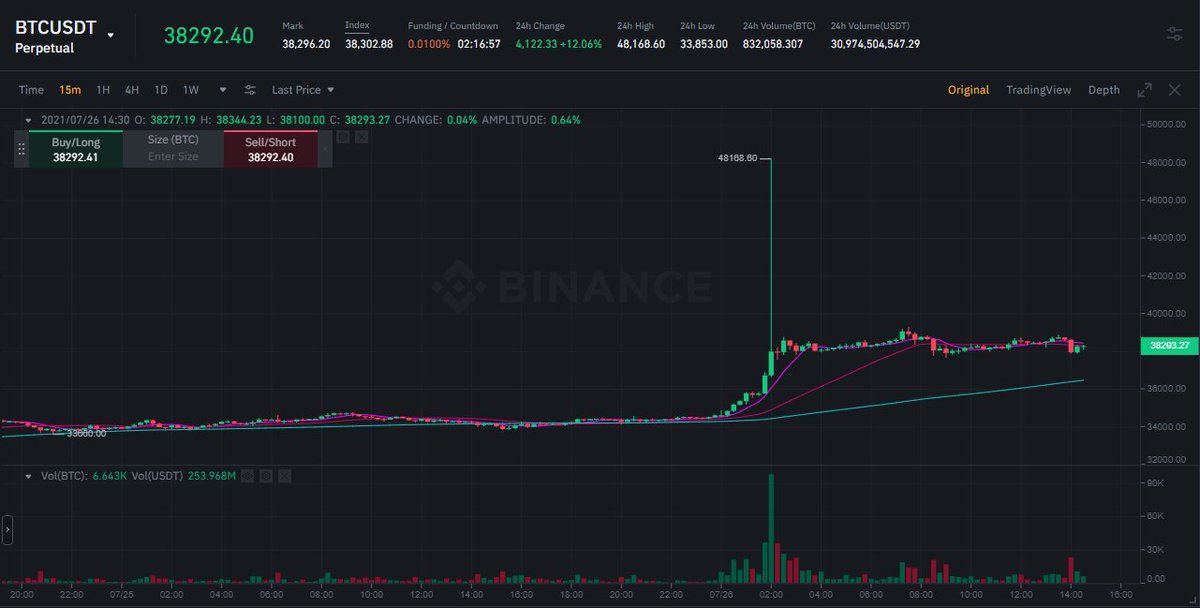 This is why you get this price chart for inverse perpetuals during a big price spike ...pic.twitter.com/aQOPGqv0AM