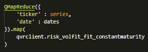 In this case, "series" is an array option underlyings, and "dates" is an array of dates. QMapReduce permutes the two arrays to create a job stream of map functions. Cool.