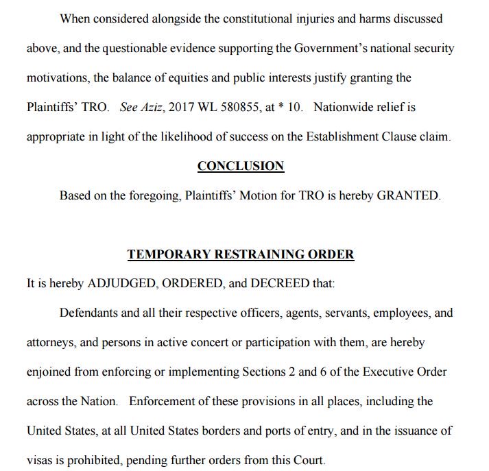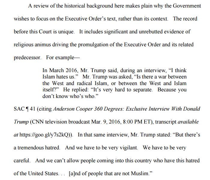 "Significant and unrebutted evidence of religious animus driving the promulgation of the Executive Order"pic.twitter.com/kSz13zfJki