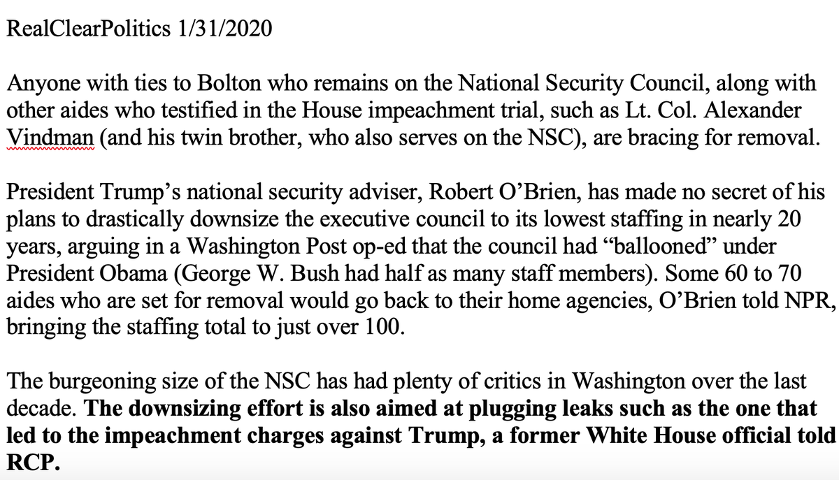 Sources also telling RealClearPolitics that the Vindmans' removal from NSC cld come as early as today https://www.bloomberg.com/amp/news/articles/2020-02-07/white-house-weighs-ouster-of-aide-who-testified-against-trump … We had a preview in our story from last week about Bolton likely getting stripped of his security clearance as well--> https://www.realclearpolitics.com/articles/2020/01/31/boltons_security_clearance_in_jeopardy_in_wake_of_book_leaks__142285.html …pic.twitter.com/YGrUTj45N5