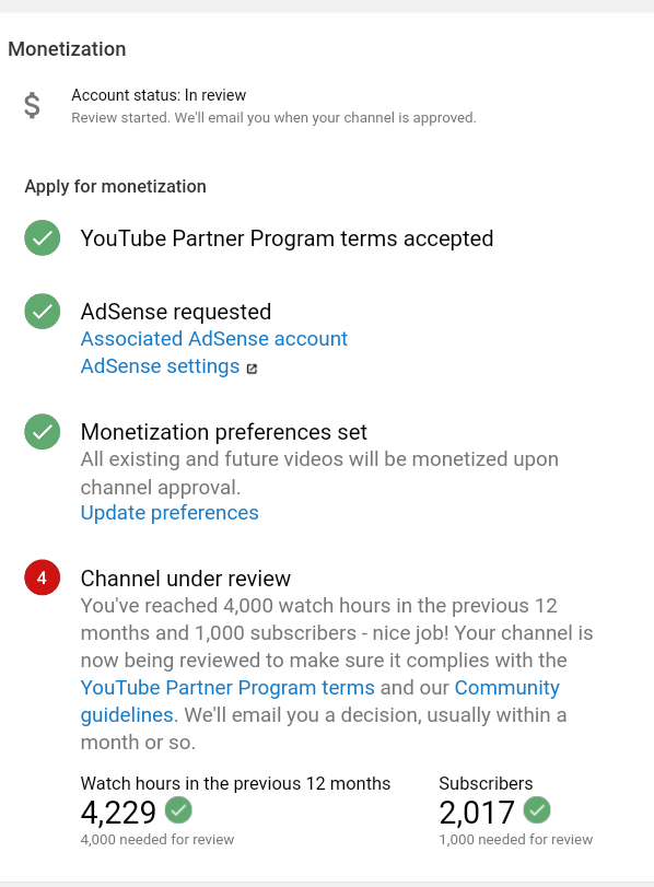 Hello @TeamYouTube I have completed 4k watching hours and 1k views...kindly let me know when my channel will be monetize. Waiting for more then 10 days.pic.twitter.com/DSaBPCMXcQ