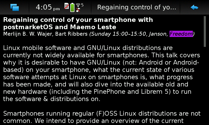 Just in case you happen to be using Maemo Leste on your smartphone on FOSDEM, the FOSDEM schedule app is now available: https://talk.maemo.org/showthread.php?t=100945 …pic.twitter.com/3zNmHw4p7Q