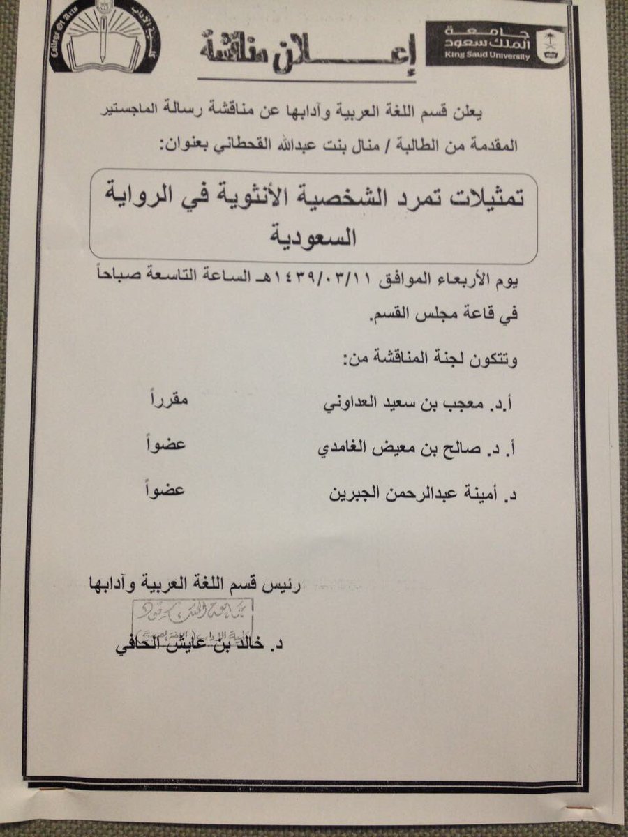 @raghdani والزميلة د. أمينة عبدالرحمن الجبرين@Aminah1233، بقسم اللغة العربية وآدابها، جامعة الملك سعود.pic.twitter.com/SikAuaT2LC