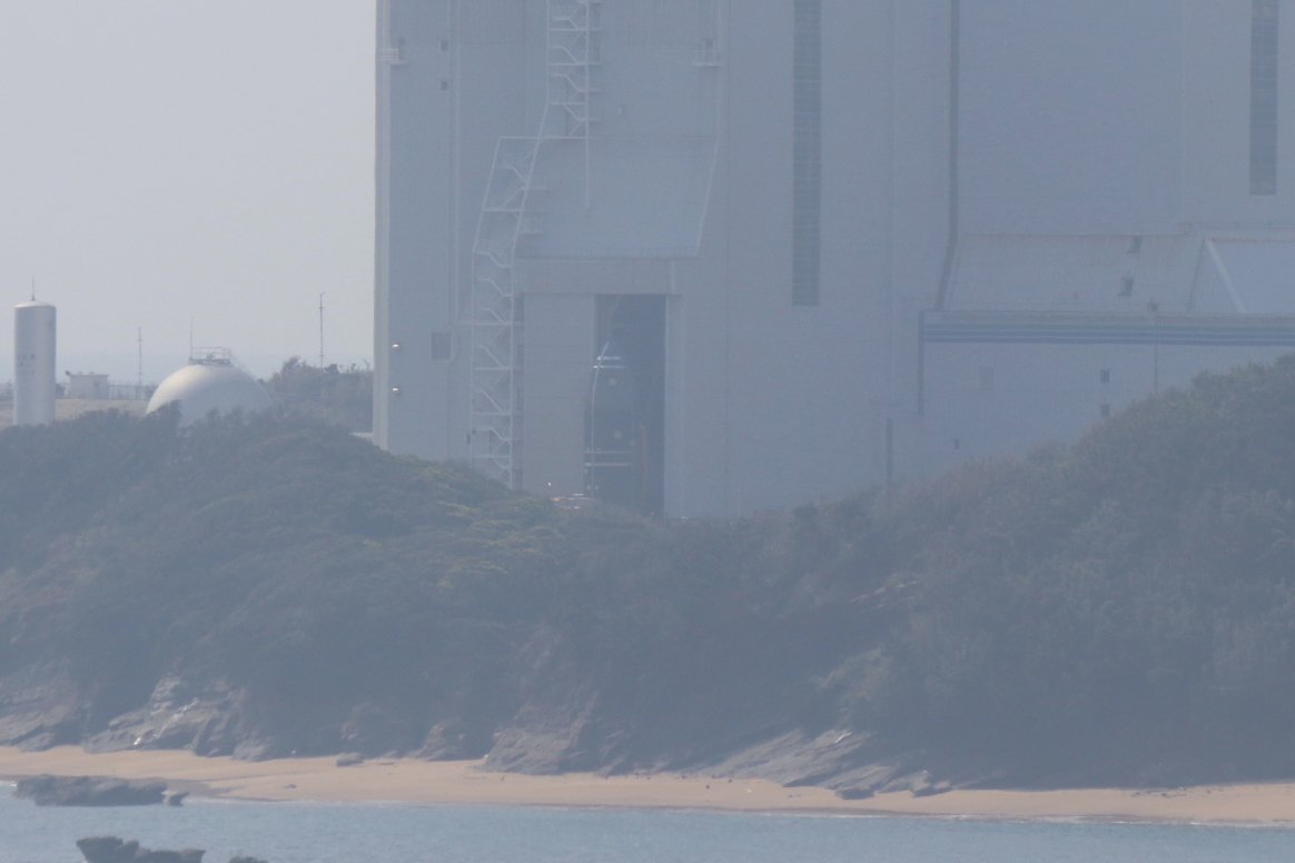 天候を考慮して今日だったのかもですね。 フェアリングの上の方の白い部分はテープ等での補強に見えますね。