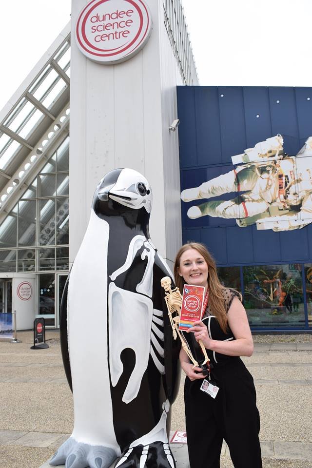 Here is our very own Rebecca with our Penguin. Share your penguin skeleton selfies with us here!