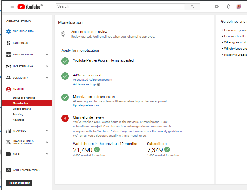 @TeamYouTube Dear Team Youtube I have already Completed 4k+ Hour and 1k+ Subscriber in Previous 365 Day and my channel is Under Review till Three Month . But monetization is not enable plz Guide Us