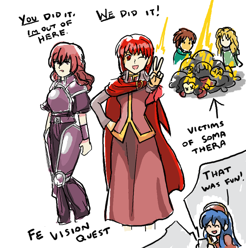 #FireEmblem Vision Quest! It's a high quality fan game. Highly recommended for GBA FE fans. I drew a silly sketch of my favorite characters from it. xD See my thoughts here: https://kantopia.wordpress.com/2021/07/09/fe-vision-quest-fan-game/ … Thanks for this wonderful fan game, Pandan & friends!pic.twitter.com/CLFNEu2EIs