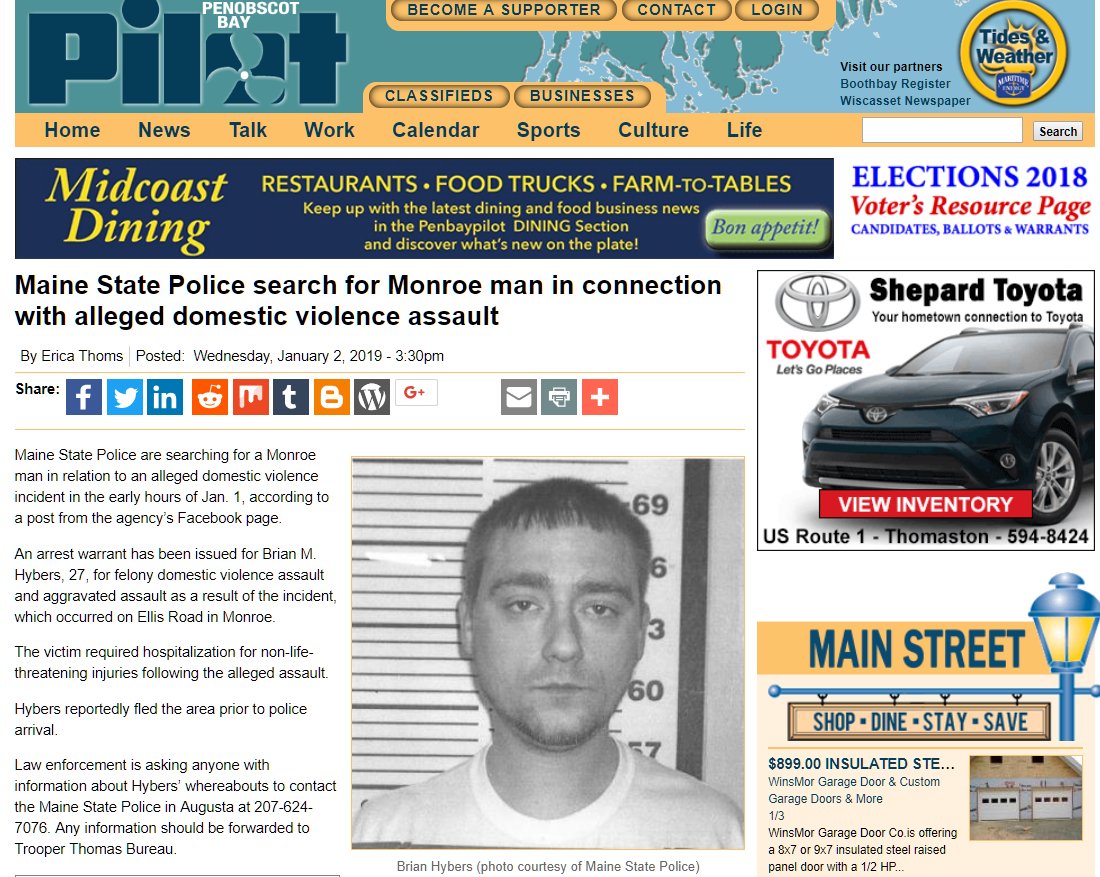 #Maine "The victim required hospitalization"#MonroeMaine "Brian M. Hybers, 27, for felony domestic violence assault and aggravated"#mepolitics#dv#portlandme#monroeme https://www.penbaypilot.com/article/maine-state-police-search-monroe-man-connection-alleged-domestic-violence-assault/112212 …pic.twitter.com/yeEIRDIf7R