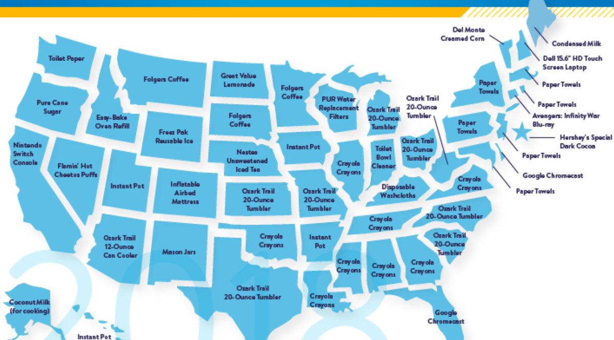 #Maine Paper Towels ...#Massachusetts Dell Laptops ..#NewHampshire#WALMART TOP SELLING ITEMS IN EACH STATE https://corporate.walmart.com/photos/walmartcom-2018-top-selling-items-by-state …#nc#va#mepolitics#fl#tx#portlandme#oh#ca#folgers#bangor#nhpolitics#shoppic.twitter.com/0pXnNw36fn