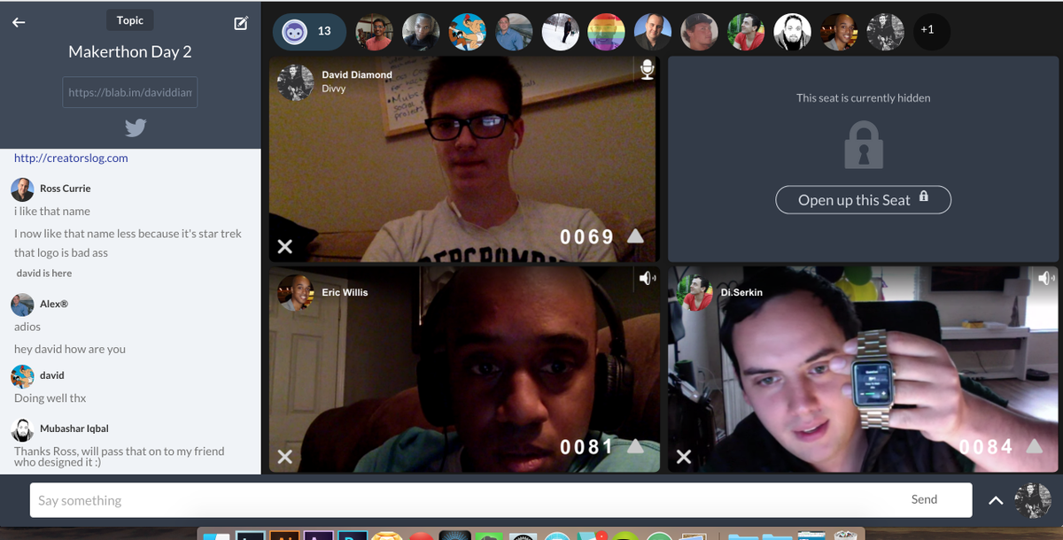 @mubashariqbal updating us on http://creatorslog.com#makerthon tune in at http://blab.im/daviddiamond1 pic.twitter.com/HUcDOeoZ6h