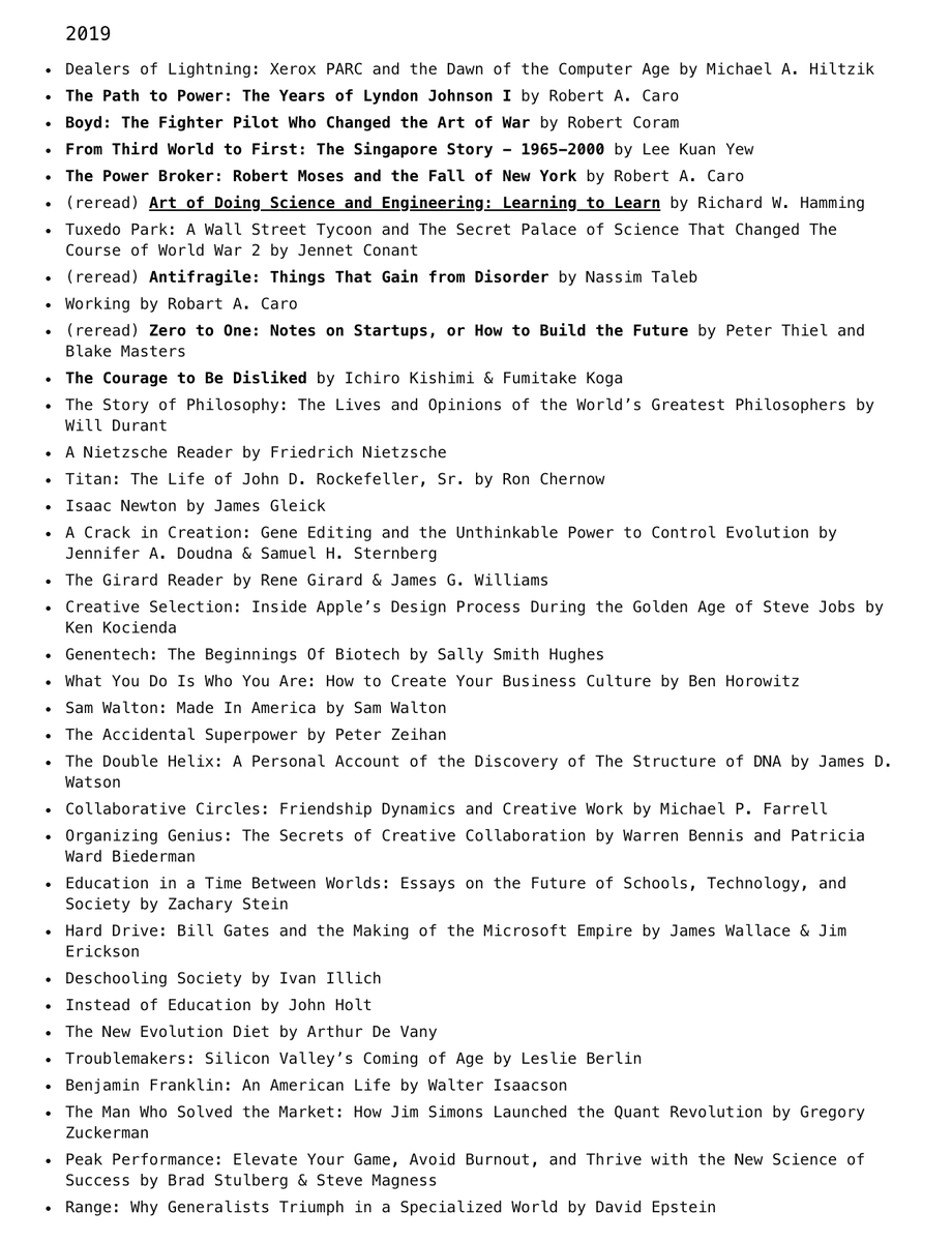 A few days late, but I finally updated my site with 2019 books http://maksim.ms/books/ . Based on the ones in bold, very easy to tell that this year's "top books" list for me was particularly influenced by