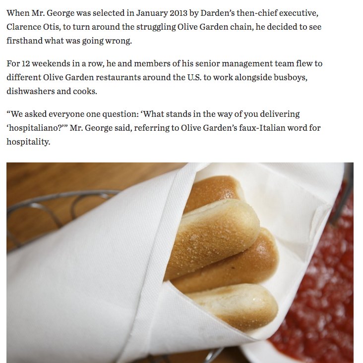 Tom Gara @tomgaraMost Olive Garden thing ever: they train staff in art of "hospitaliano", their made-up Italian word for hospitality pic.twitter.com/7wuqXvRPCp3 retweets 5 likes -