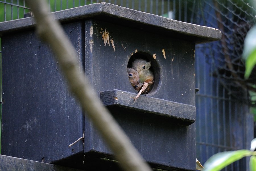それぞれに巣材を運び込む親リスがいたので、三家族はいるのではないでしょうか、、、。