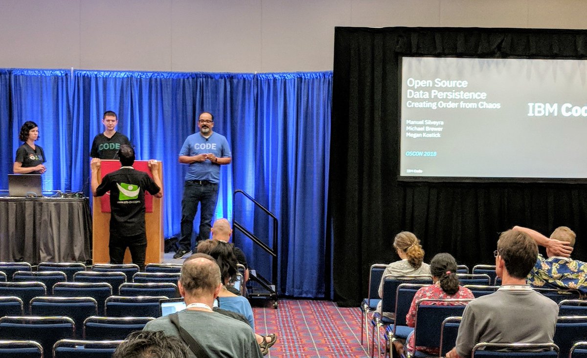 @oscon is "Open source data persistence: Creating order from chaos" with@kostickmegan,@mbrewed, and@manuel_silveyra from@IBMpic.twitter.com/c755Ws33Xp