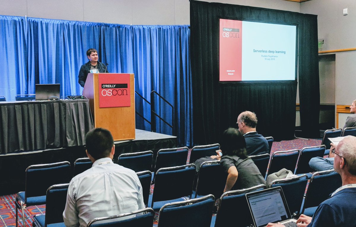 @OReillyMedia#oscon day 1 in rm D137/138 with@ryfeus of@astrodigitalgeo and "Serverless deep learning; or, How to port your TensorFlow model to AWS Lambda"pic.twitter.com/efRGWvDW5h