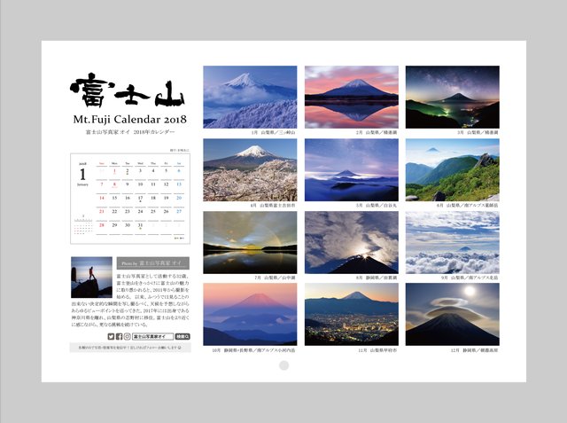富士山写真家オイ 2018年カレンダー【A4壁掛けタイプ】 を購入しました! https://shop.fujisantotomoni.jp/items/8472772