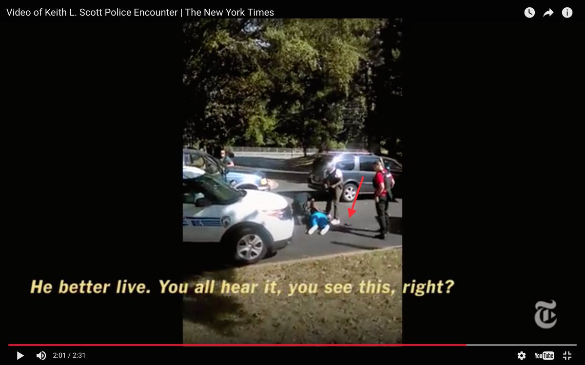 No gun near Keith Scott's body in video recorded by his wife seconds after killing http://bit.ly/2cSzA3F by @RobertMackey