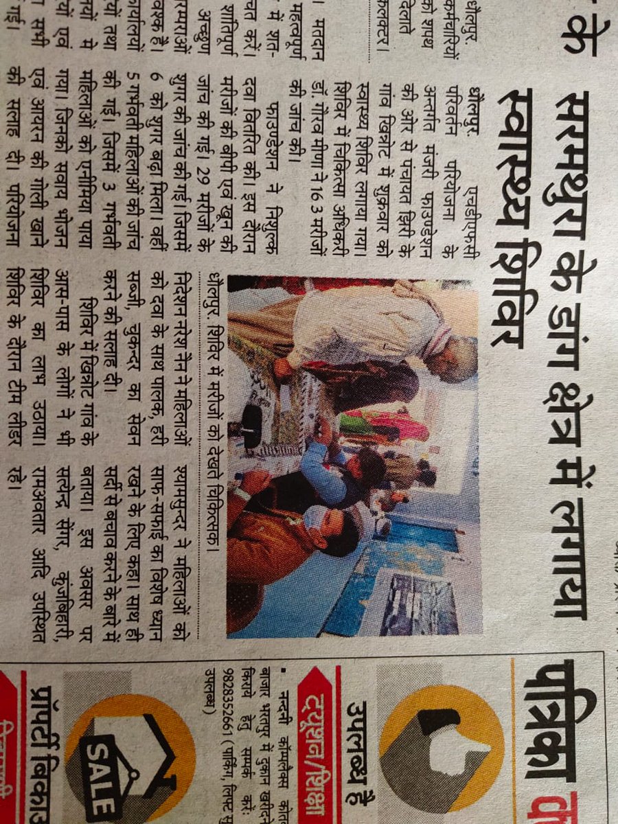 A health camp was organized under the project HRDP Parivartan, in village Khinnot, Dholpur (Raj). More than 165 patients were registered & got treatment on seasonal diseases, BP, respiratory problems and some other issues of women, adolescents & children.