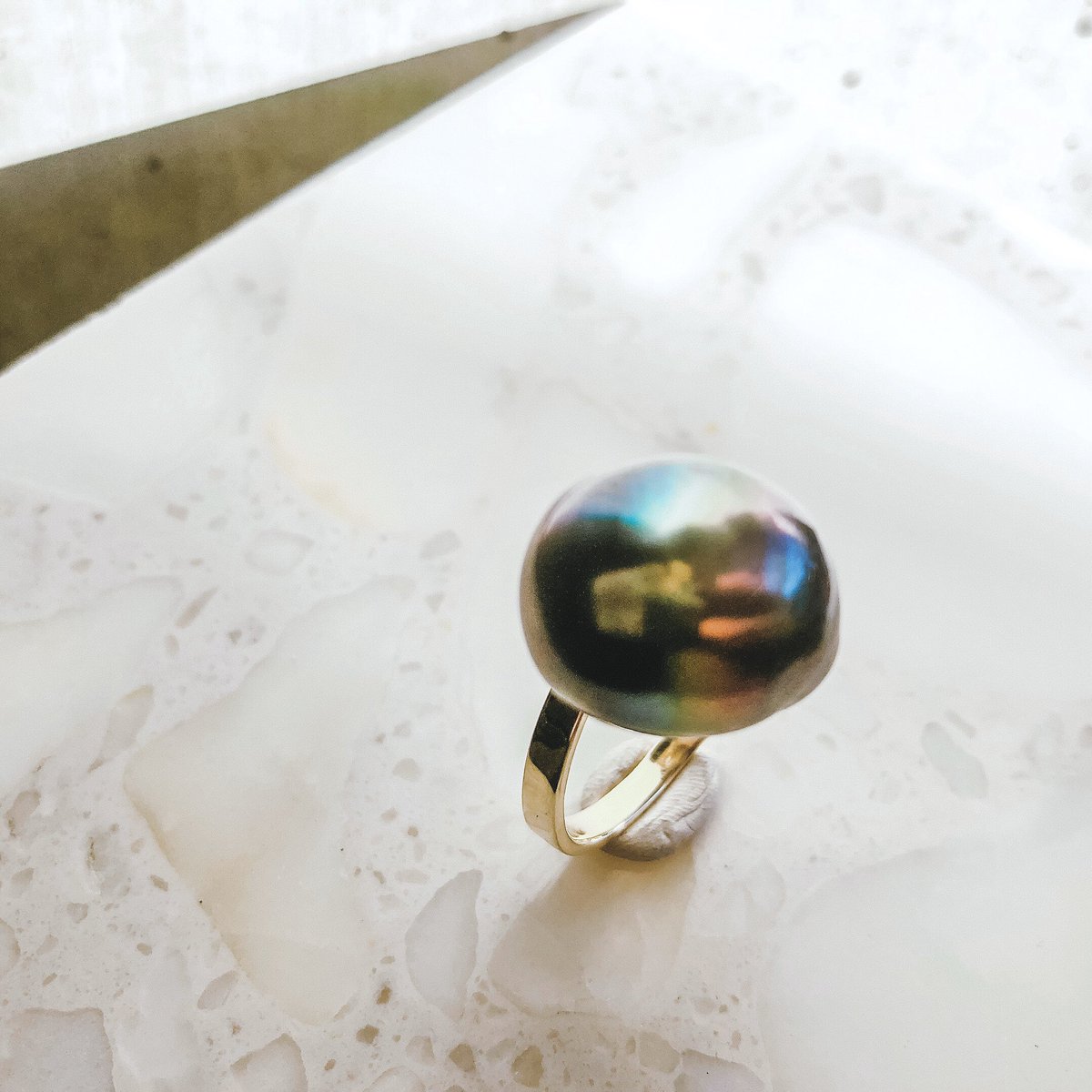 レインボーカラーのタヒチパール 緑→赤→黄色→黄緑→紺色→黒 とグラデになってるんだけど レアすぎて人生で二度と出会えない気がするんだよね。pic.twitter.com/PLCazMyDE9