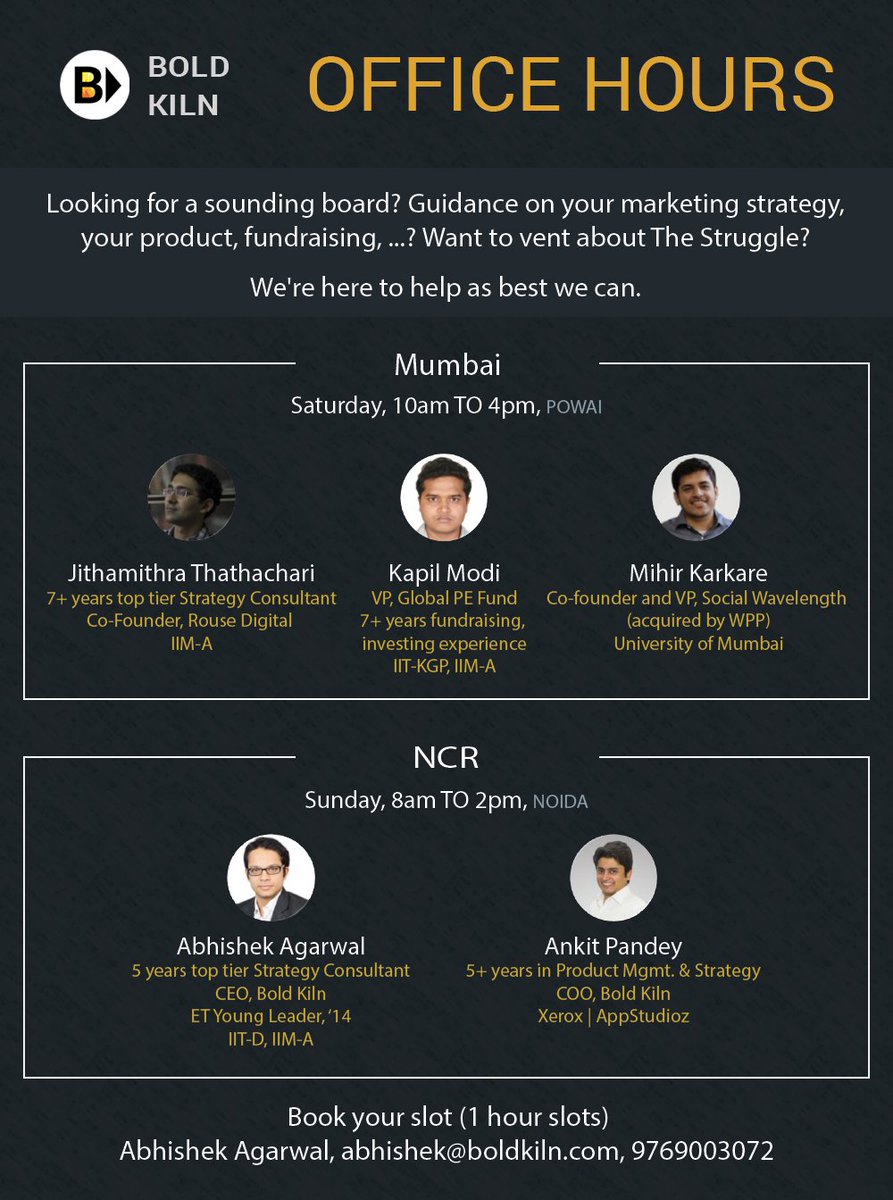 @BoldKiln Office Hours Let's chat about whatever you want to / need help on.#startups#bombay#delhipic.twitter.com/o0GI7B7Sso