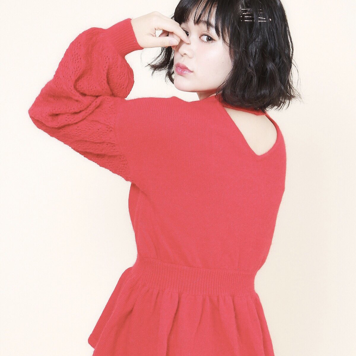 【広瀬すずちゃん着用】 ふわふわのファーライクなフェザーヤーンをあしらったニットプルオーバー。 甘すぎない赤がコーデのポイントに♡ 背中あきのデザインだからコートを脱いだらドキ! . ☑︎アンゴラペプラムニットトップス 全3色 ¥12,800+消費税 https://shop.marblee.jp/products/detail.php?product_id=1825 …