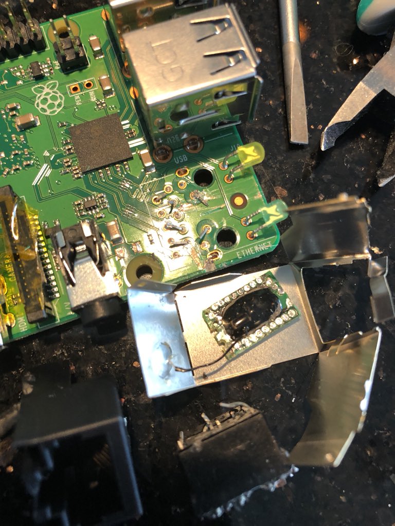 Folks dont need to go as far as I did, pretty much anti-tamper epoxy on any circuit board in a network jack indicates issues (not much IP to protect in ordinary ones). I doubt I’m that special, anyone care to sacrifice a $50 Raspi 3b+ to confirm?