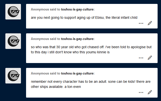 Can we just drag all these people en masse to Reitaisai for a crash course in "people can draw whatever the fuck they want and they're still normal people regardless of how much it disgusts you"?