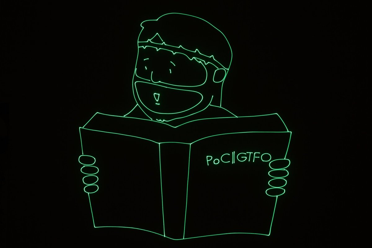 Now realize that it's an actual photography of pocorgtfo15.pdf beamed with a laser projector by @marcan42