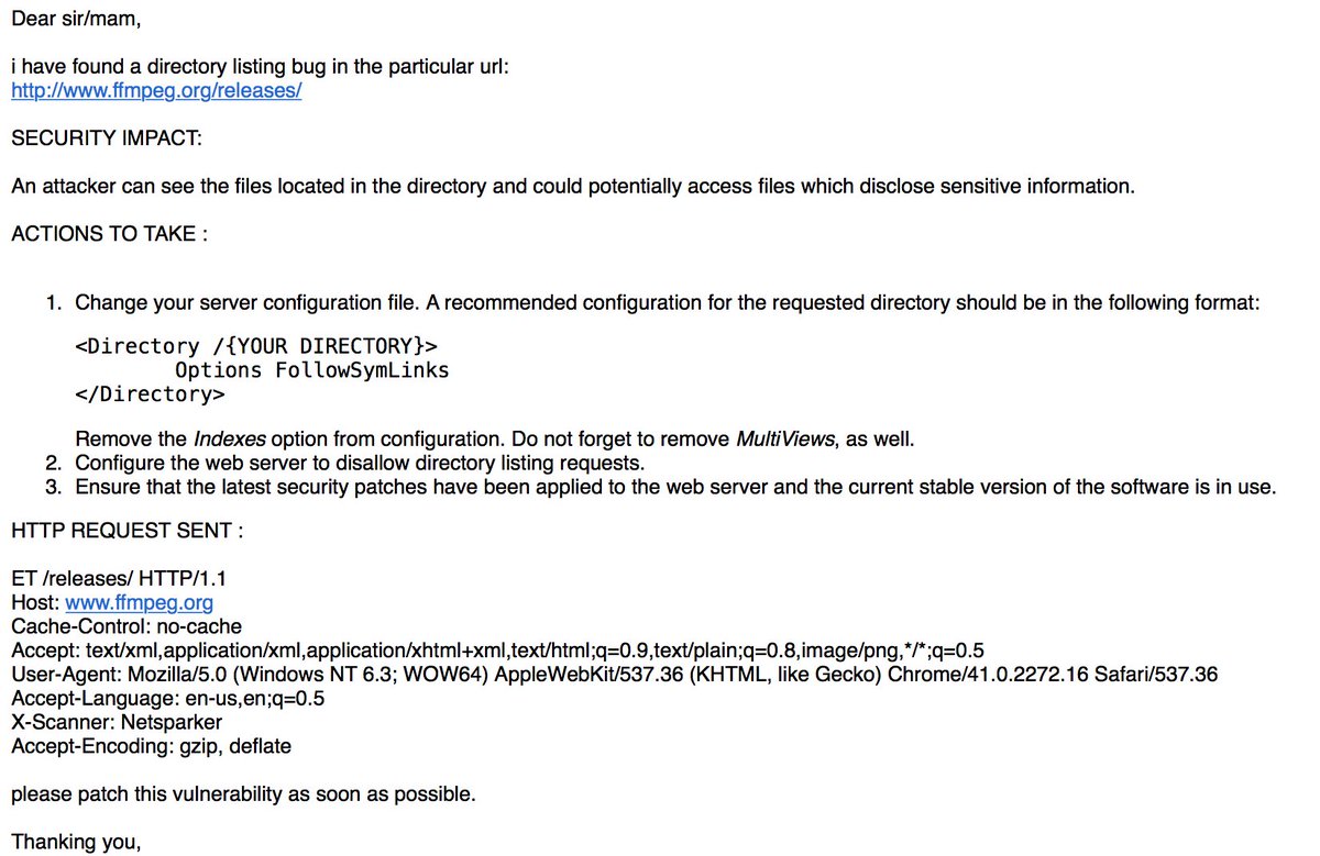 From the ffmpeg-security mailing list, how the hell even, what, do undergrad students get brownie points for sending BS security reports?pic.twitter.com/hype2Bn2IZ