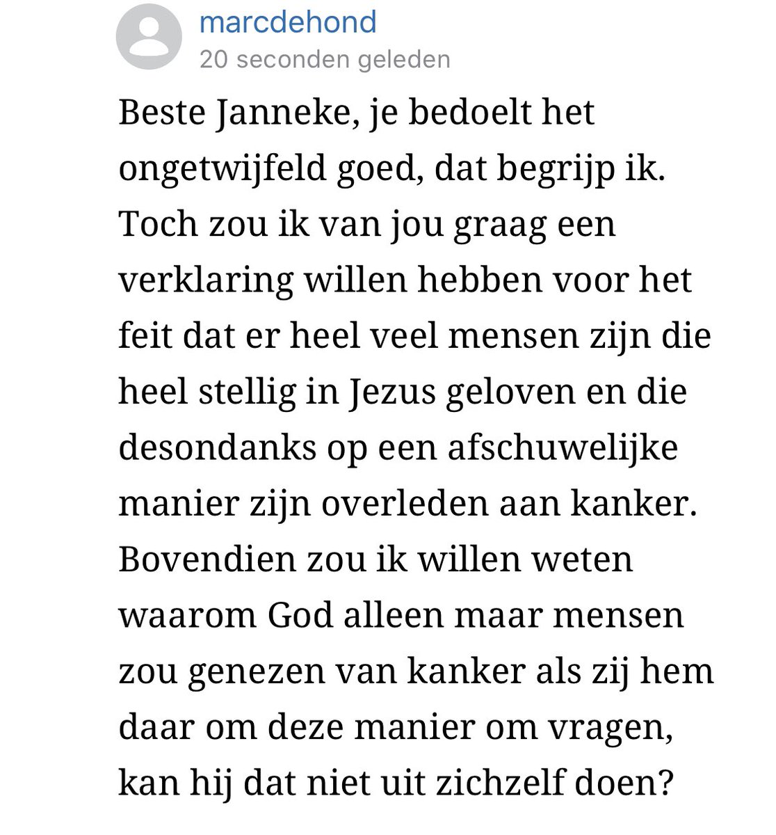 Serieuze vraag... als God echt zou bestaan, en God echt in staat zou zijn mensen van kanker te genezen, waarom doet hij dat dan alleen bij mensen die daar op deze manier om vragen?? Als hij echt zo groots is geneest hij iedereen zonder daar liefde/bevestiging voor terug te willenpic.twitter.com/28IQLZb9GA