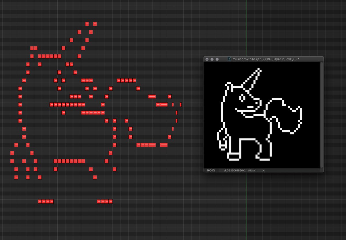 Why does the piano roll version of the unicorn look bad? Because I’m quantising to a musical scale, to try to make it not sound terrible when played. It still sounds terrible. I’ll see what I can do about that.