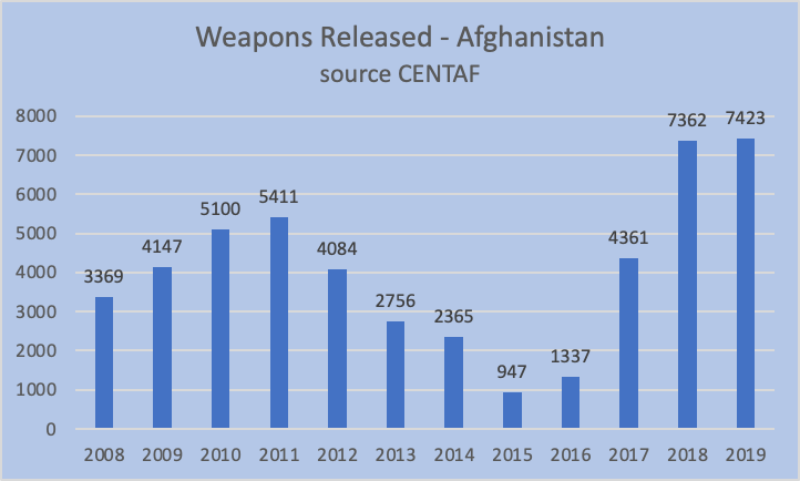 The number of weapons released are only part of the story and do not necessarily correlate to more civilian harm - it matters where and how you use the weapons (see 2014 lowest CIV deaths from air). However 2018 & 2019 were notable in highs for bombs dropped and CIVCAS 3/pic.twitter.com/YqGbEGQ9Ss