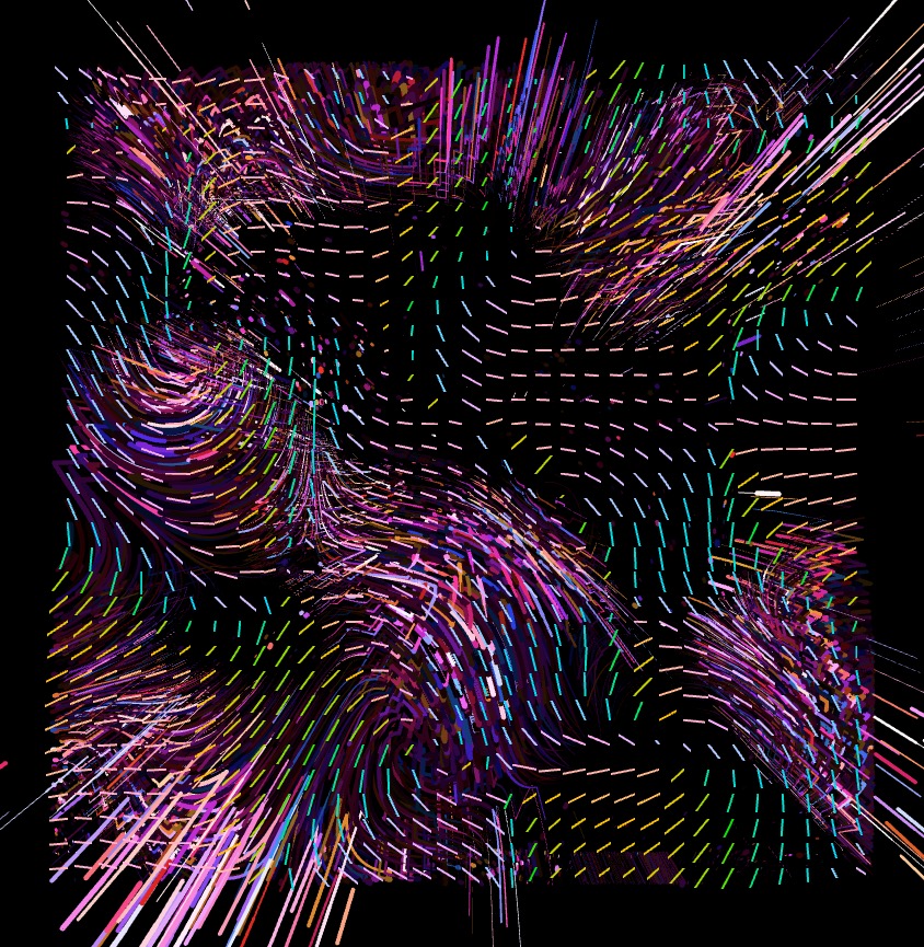 It’s like Miegakure game version of a strange attractor where we flow particles along a curl of a vector field morphing over time said creative director to a tech lead while staring at a bullet point list in Notion and a möbius loop sketch on a sticky note. Need