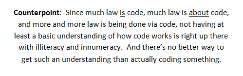 𝐏𝐨𝐢𝐧𝐭: Lawyers & law students no more need to learn to code than motorists need understand how fuel injection workspic.twitter.com/oB66fauxWN