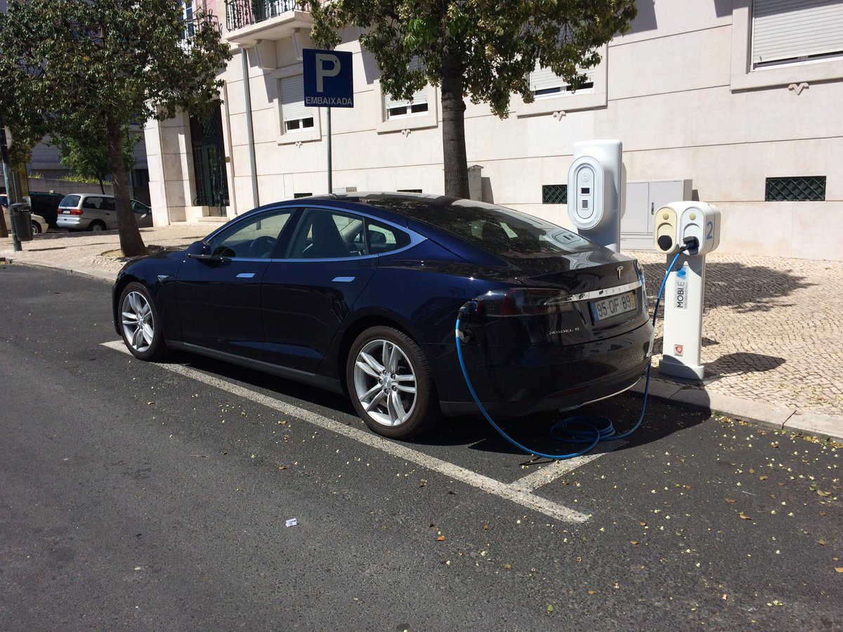 What a beautiful sight: Tesla S using street charger in Lisbon, Portugal