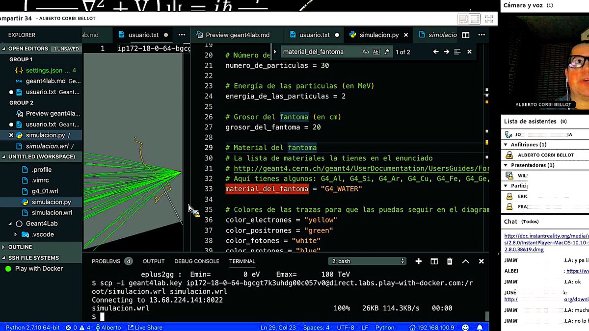 @UNIRuniversidad! Combining science with@Docker, Python,@PowerShell_Team,@Geant4, VRML,@Kitware's Paraview,@Fraunhofer_IGD's InstantReality &@castleengine. All these tools orchestrated in remote@playwithdocker+SSHFS instance from within@code!pic.twitter.com/db8kLDa2oz