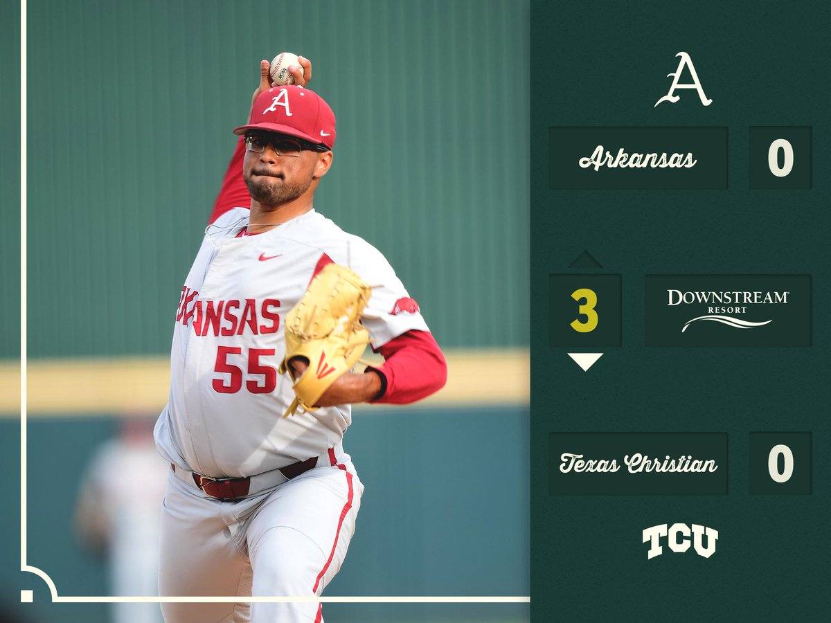 Definite pitchers' duel brewing in Baum-Walker. Just two hits in the game, but by Razorbacks. WATCH - http://bit.ly/2EOeiyT pic.twitter.com/OJau2s4GOr