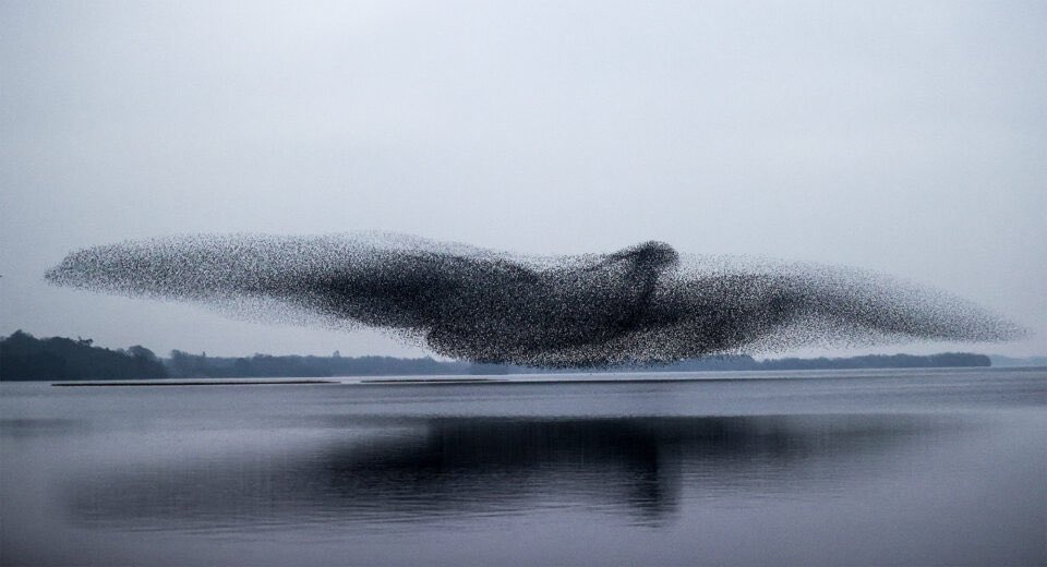 Countless Starlings Flock Together in a Miraculous Bird-Shaped Murmuration Over Lough Ennell (Photo: James Crombie) https://bit.ly/3Iq1HA7 pic.twitter.com/7LL5kAiSDt