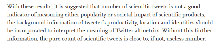 Conclusion of the paper: Without further background information, the count of scientific tweets is weakly informative at best. By the way: do you happen to know what percentage of scientists is on Twitter in 2019
