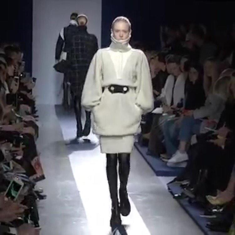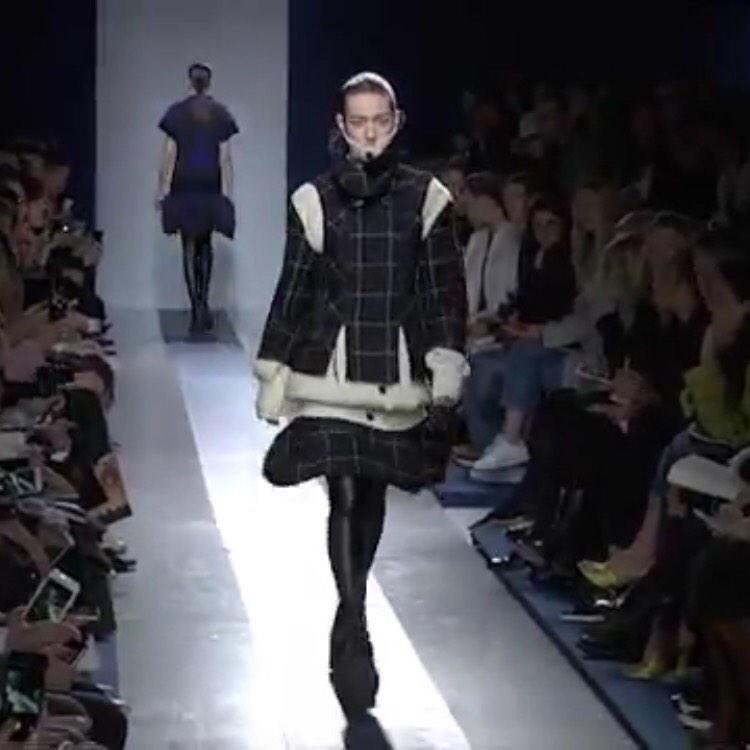 #sacai. High collars, extra long sleeves, fur and lively skirts.#PFWpic.twitter.com/82v3rXZmj5