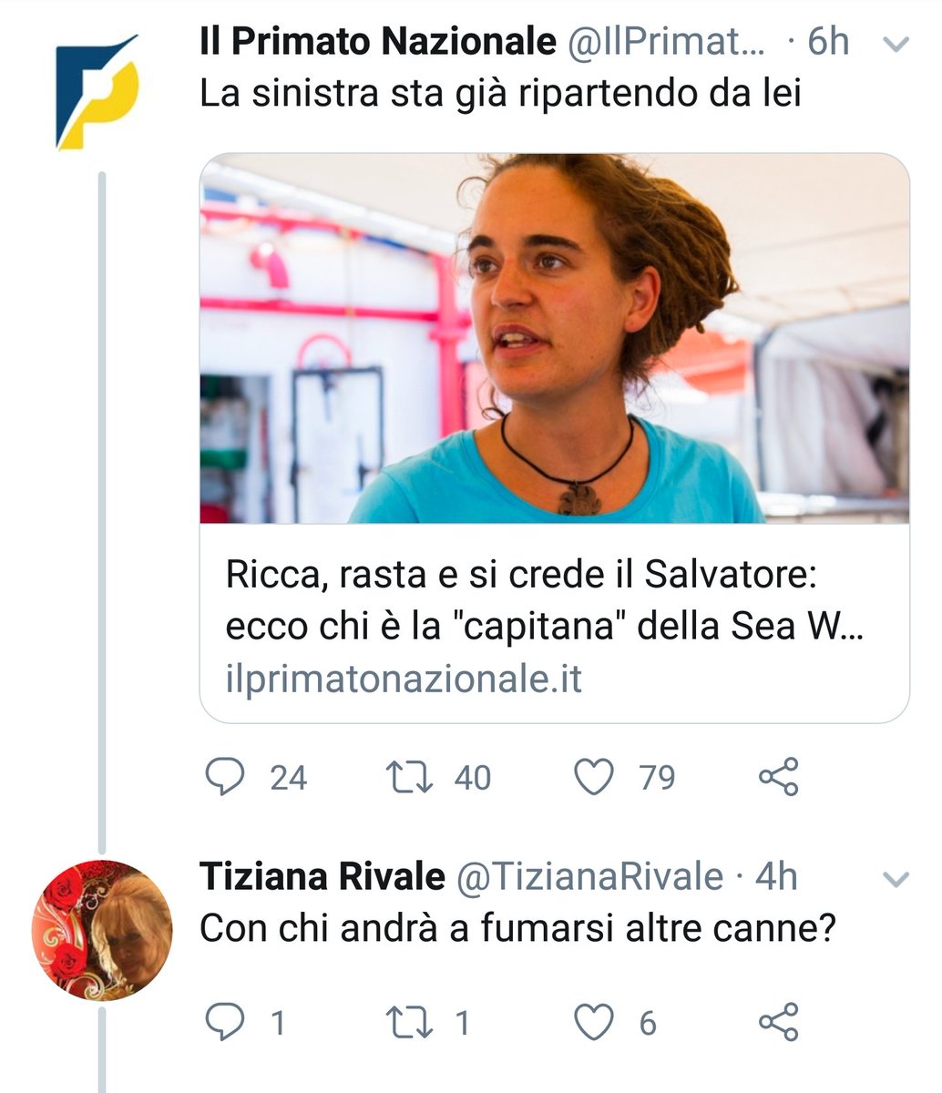 #CarolaRackete vi sbatte in faccia il fallimento di una vita intera.#IoStoConCarola#SeaWacht3#RestiamoUmani#FATELISCENDEREСпасибо. Твиттер использует эту информацию, чтобы сделать вашу ленту лучше. ОтменитьОтменить -