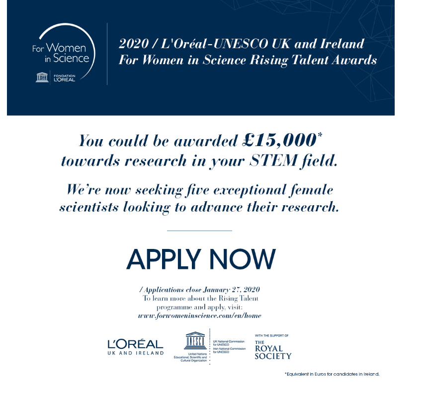 L'Oreal UK Fellowship competition now openpic.twitter.com/DoizJjsNel