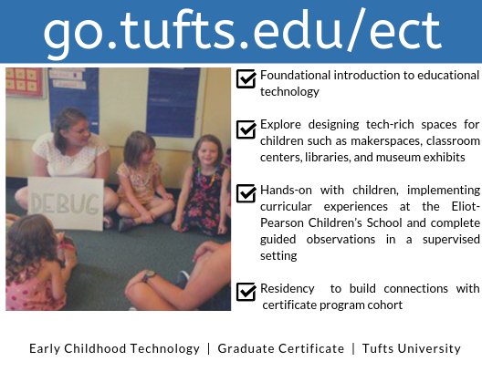 #EarlyChildhood ? Explore our blended Early Childhood Technology (ECT) Graduate Certificate program at@TuftsASEgrad@EPCSHD Submit an inquiry today to learn more http://go.tufts.edu/ect#ectech#ecechat#csforallpic.twitter.com/O0Rm8k4lXR
