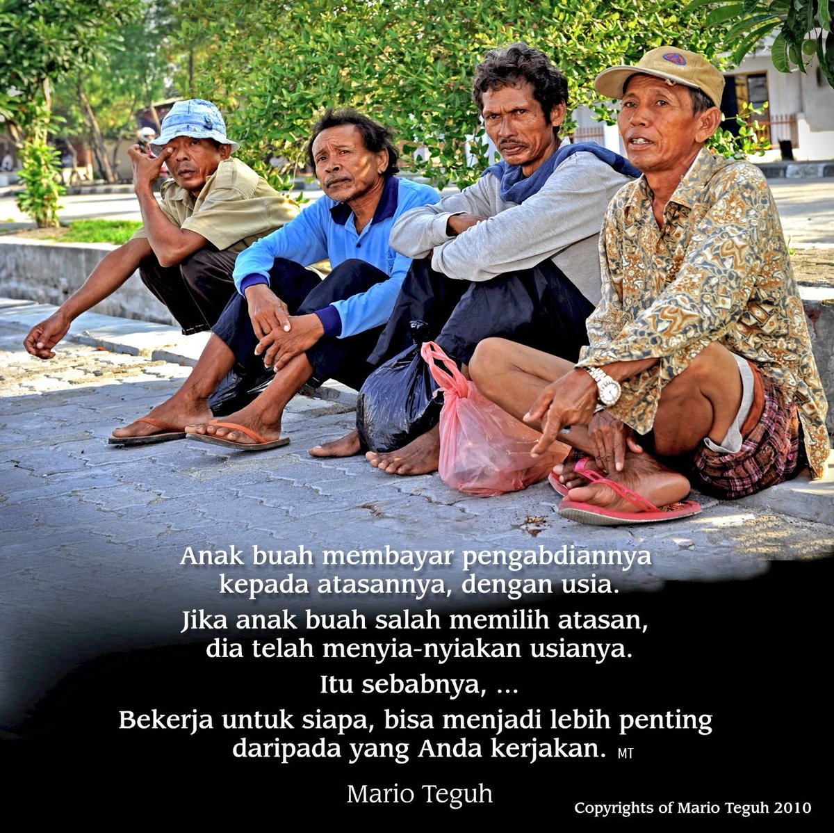 Orang yang rela bekerja karena telh memelihara tangannya Mereka tdk mau meminta - minta. Dan tentunya bisa menjadi motivasi nya. Bukan gara-gara mereka lalu buat kesempatan disaksikannya untk memenangkan politiknya berteriakan dg otot besarnya. Hmmm..yg dipikirkan mau bekerja