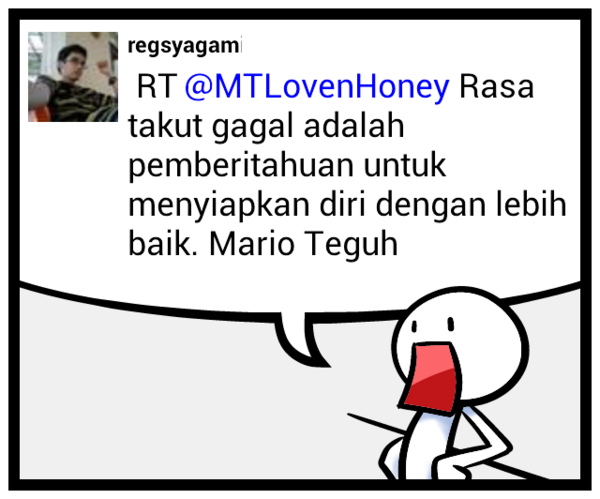 @MTLovenHoney: Rasa takut gagal adalah pemberitahuan untuk menyiapkan diri dengan lebih baik. Mario Teguh -