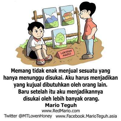 @MTLovenHoney Aku harus menjadikan yang kujual dibutuhkan oleh orang lain. Baru stlh itu aku menjadikannya disukai.pic.twitter.com/wmcINP7HQI